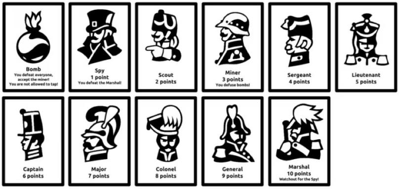 De deelnemers lopen naar het kamp van het andere team om de vlag te zoeken. In elk kamp blijft één iemand zitten om kaartjes uit te delen (één aan elk teamlid). Op het kaartje staat een rang. Als een speler onderweg een speler van de andere ploeg tikt, moeten ze beiden elkaars rang laten zien. De hoogste en sterkste wint en krijgt het kaartje van de verliezer. Die moet dus weer terug naar zijn kamp voor een nieuw kaartje. Bij gelijke rangen gebeurt er niets en kunnen ze weer verder op jacht. Op die manier kunnen deelnemers ervoor zorgen dat tegenstanders niet snel bij hen in het kamp komen. Gebeurt dit toch, dan krijgt de tegenstander 10 seconden de tijd om de vlag te zoeken. Daarna moet hij terug naar zijn eigen kamp.