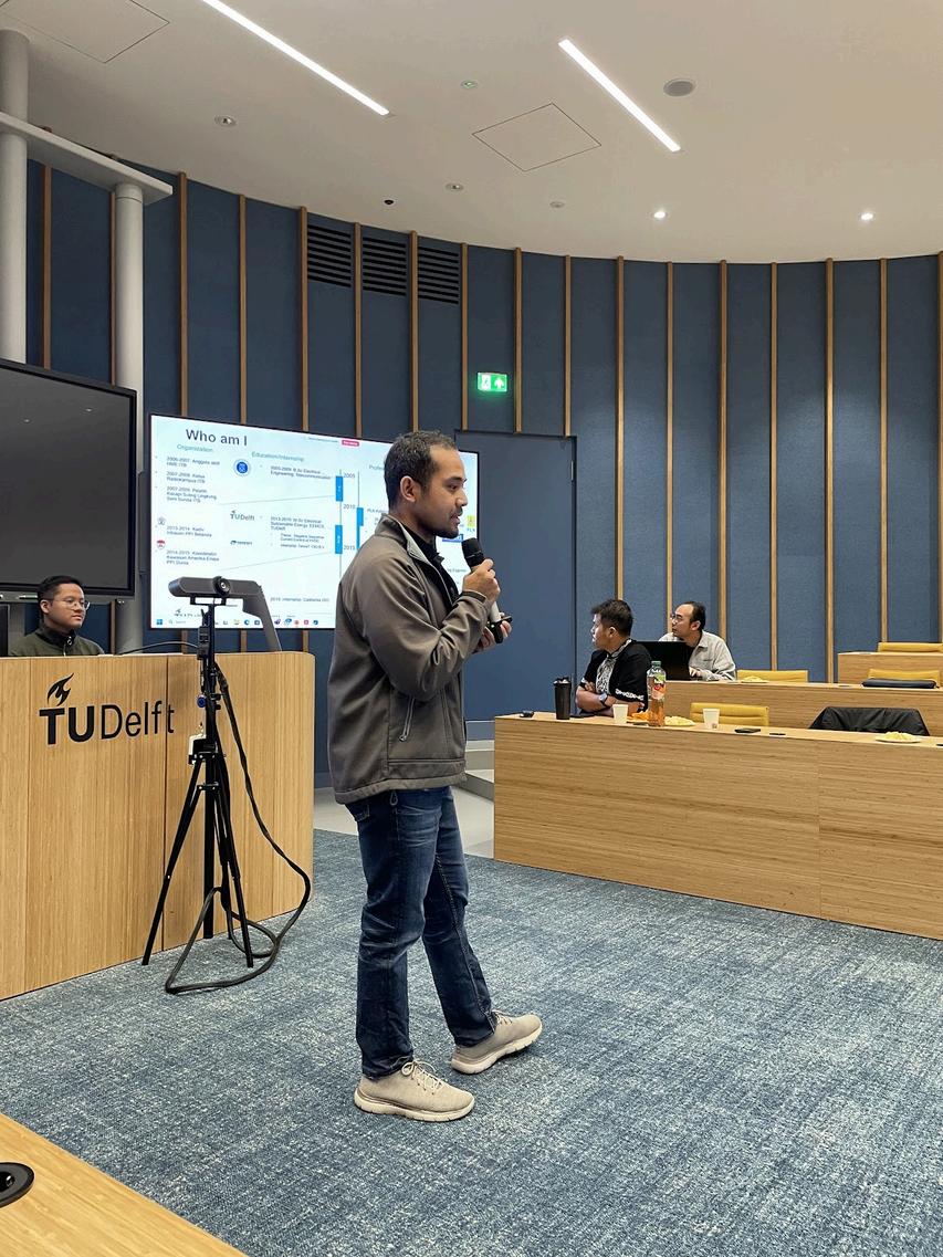 Ilham Naharudinsyah, pemateri kedua, mahasiswa doktor Faculty of Mechanical Engineering, TU Delft