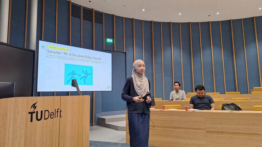 Syarifa Fitri Auliya, pemateri aspek kemasyarakatan AI, mahasiswi doktor di Faculty of Technology, Policy and Management, TU Delft