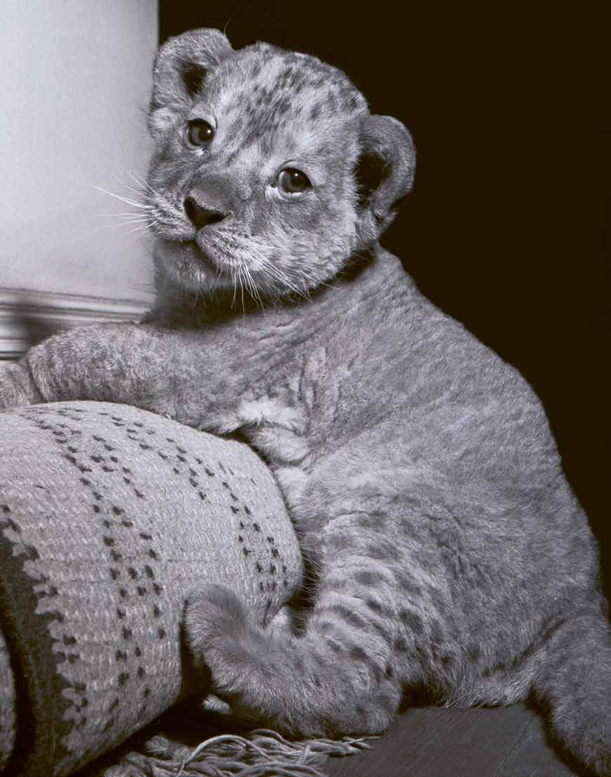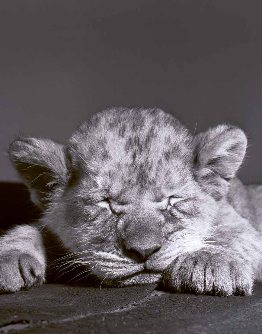 Hay que obedecer a las madres —todo el mundo lo sabe—, pero quizá el pequeño león ya le ha hecho demasiado caso a la suya y por eso en esta imagen aparece solo y perdido en medio del parque. Aprovechó un descuido en la Casa de Fieras para escaparse y poder conocer así el Gran Paisaje, la vegetación virgen, el desierto y el lugar donde los leones van a beber. Se escapó para escuchar el canto del ruiseñor, que es el pájaro que se ríe de los señores, y para conocer a todos los pájaros de mil y un colores. Y corrió tanto que ahora está agotado. No ha llegado muy lejos, pero ya empieza a anochecer y dentro de las grandes y frías casas que alzan sus tristes estructuras de hormigón armado hacia un cielo sin estrellas ya empiezan a encenderse unas luces apagadas.