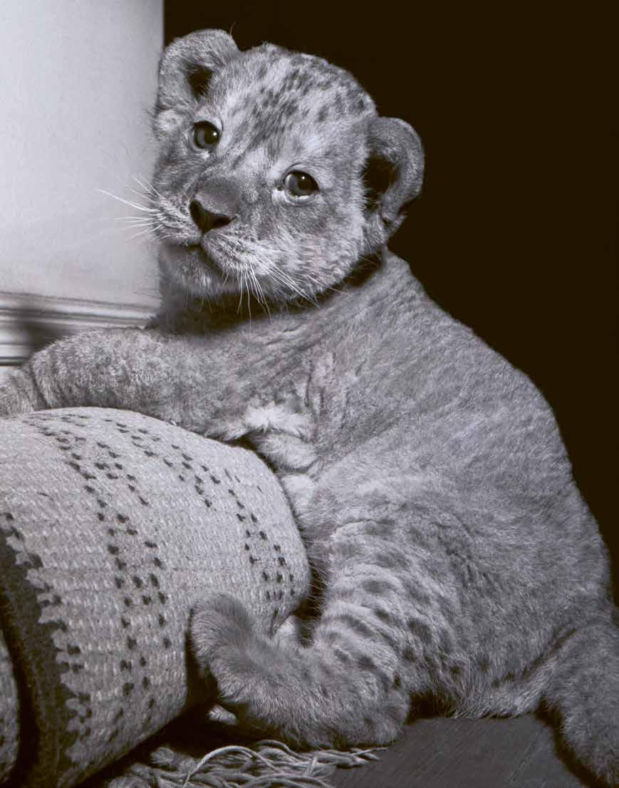 Al seu costat hi ha el seu germanet, un altre lleó encara més petit que ell, que s’ha amagat darrere la seva mare perquè té por, i si té por és perquè un dia un carallot amb un barret de palla negra i la boca plena de dents corcades li va donar un cop de bastó, així, perquè sí, tot passant, per fer riure als seus amics i divertir-se.