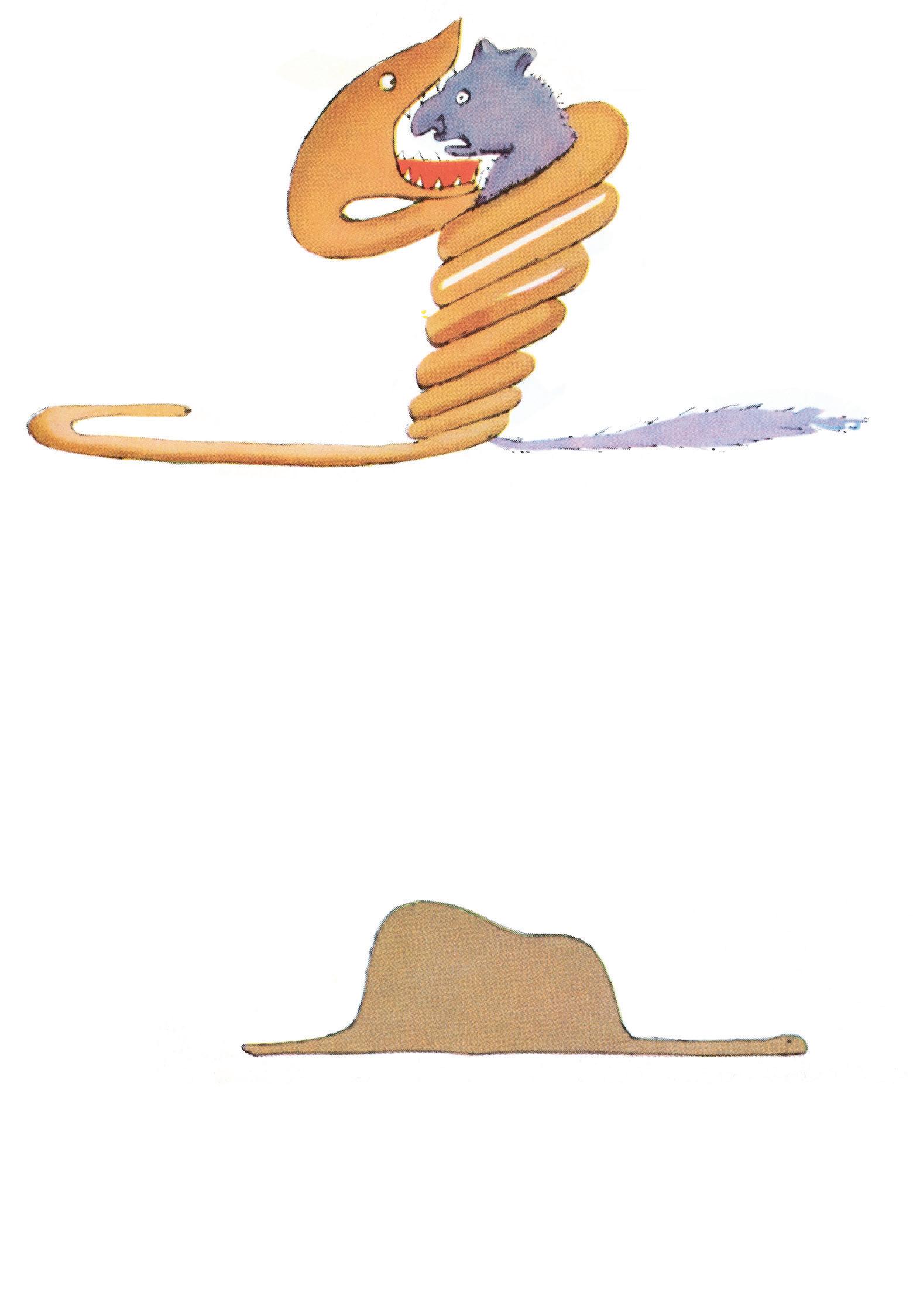 … A los seis años, vi una vez una magnífica ilustración en un libro sobre la selva virgen, que se titulaba Historias Vividas. Representaba una serpiente boa que se tragaba una fiera. Aquí tenéis una copia del dibujo. En el libro se decía: «Las serpientes boas se tragan a su presa entera sin masticarla. Luego, no pueden moverse y duermen durante los seis meses que dura la digestión».