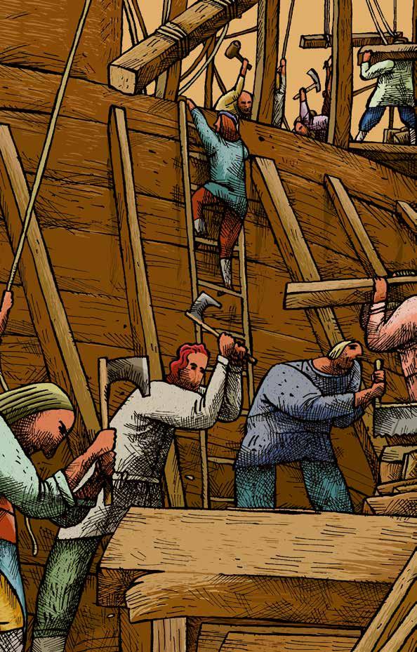–Y en los astilleros, además, se necesitaban calafateadores. Estos cerraban con estopa y brea las junturas entre las tablas para que no entrase el agua.