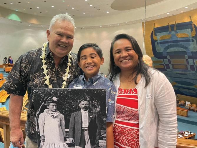 On April 5, 2022, 10-year-old Nainoa Woodward, greatgreat grandson of David and Alana Kamahana and my oldest son spoke in front of the State House Finance Committee that designated $5 million for the design and construction of the Kalaupapa Memorial, a key step in getting the bill approved and signed into law.