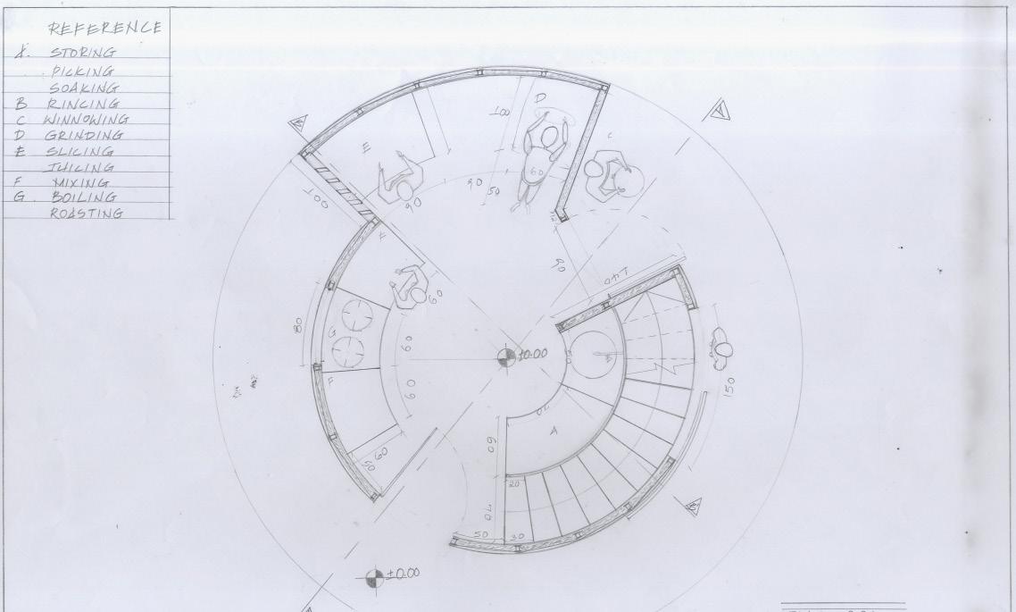 The idea was to create a traditional compact kitchen by extracting concepts and materialsfrom the artifact.