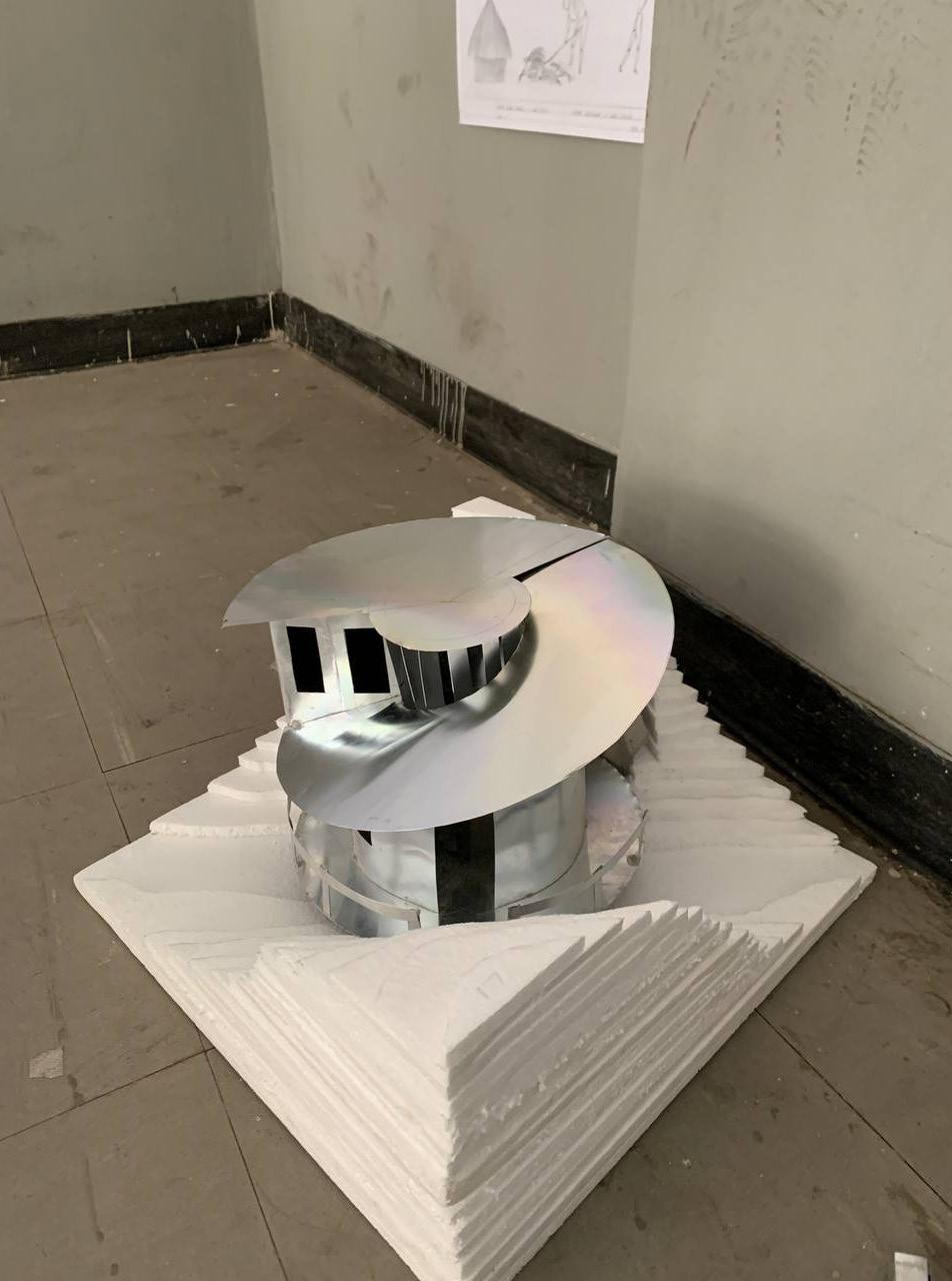 The space is designed with the theme in mind to host an outdoor music fest. the space is situated in a valley between two hills and has a cover designed with concepts extracted through the design class.