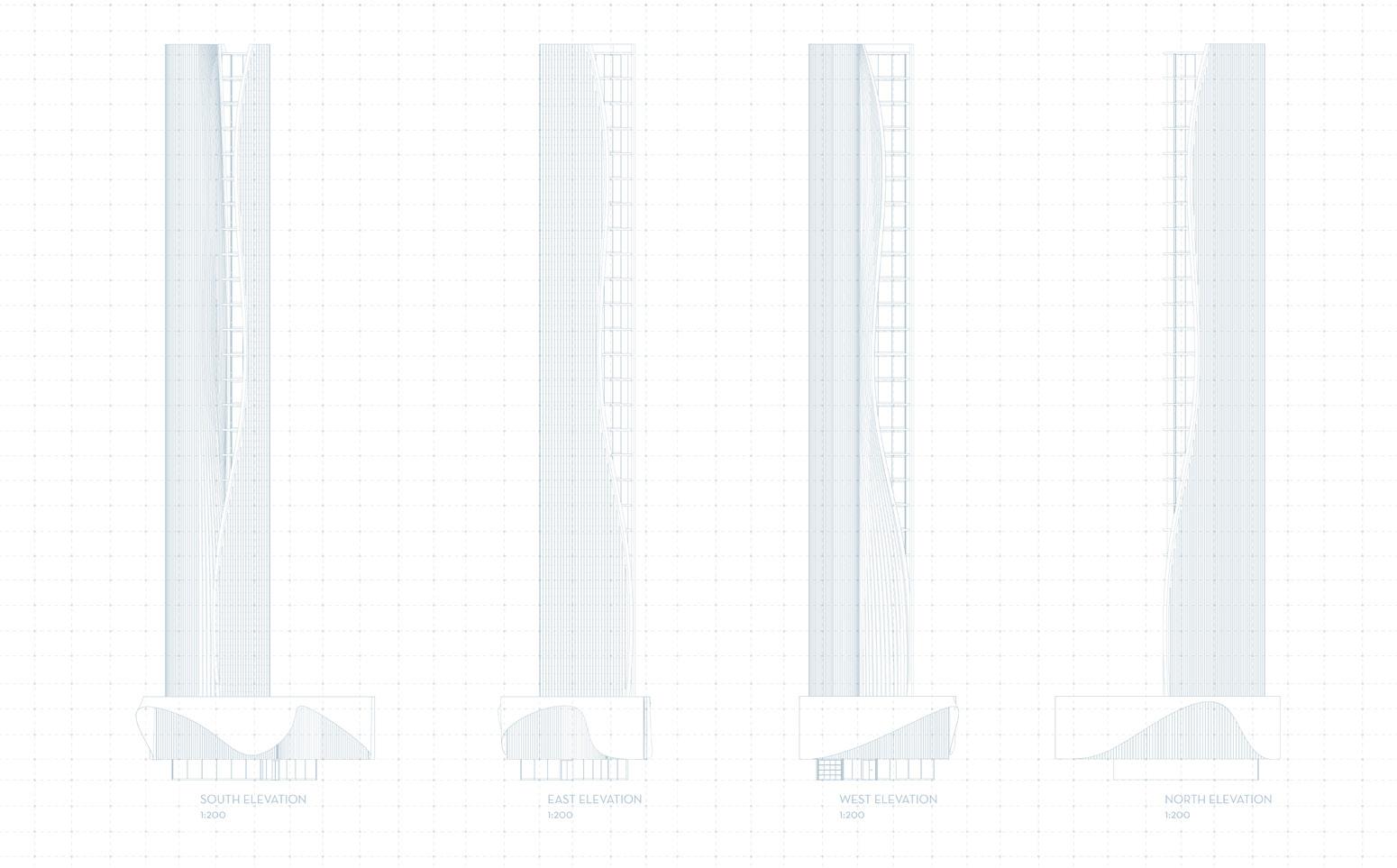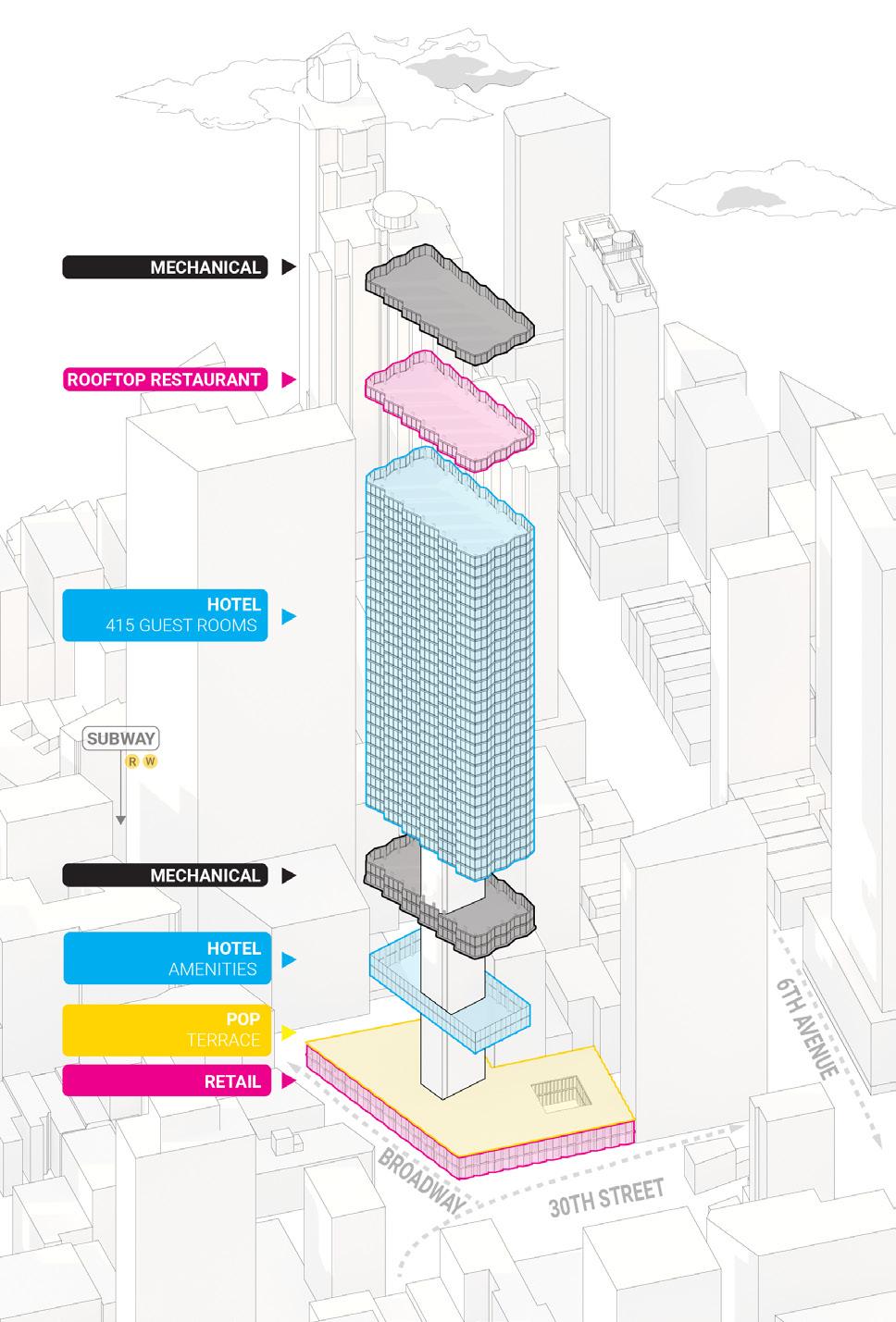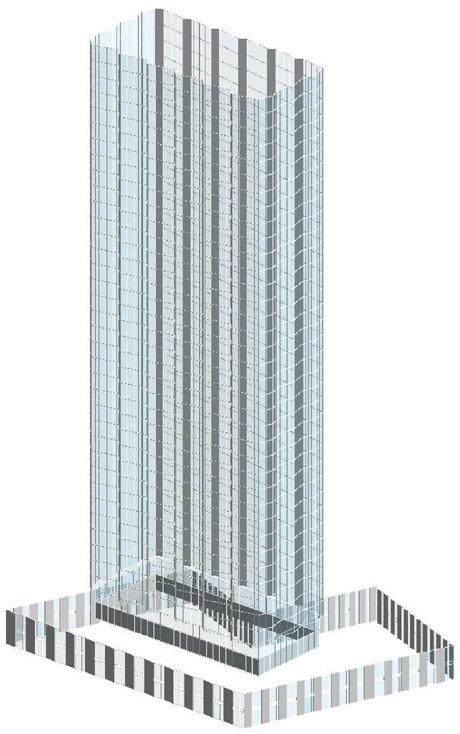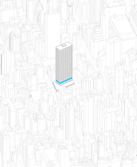 Your task is to design an overall concept (program and massing) strategy that conforms to zoning. You must then develop your building further to schematic level, which includes facade design, floor plates, core location, basic structural framing/grids, staircases/circulation, and basic floor layouts. You must also present diagrams and data that prove you are conforming to all requirements, as well as a workflow diagrm that shows your parametric strategy.