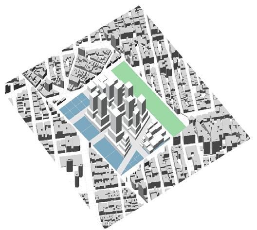 Permitted zoning Podium - Retail Podium - Retail Tower - Amenities Tower - Hotel Tower - Restaurant Tower - Hotel Lot Area Lot Area Permitted FAR Permitted ZFA POP Area Courtyard Pop bonus ratio 6 Total potential ZFA Ground floor level 1st floor level Gross floor area Typical floor height Gross floor area Typical Floor Height Gross floor area Typical floor height Gross floor area 29,990 sqft 29,990 sqft 10 299,900 sqft 18,340 sqft 1900 sqft 121,440 sqft 421,340 sqft 14ft 14ft 58,080 sqft 12ft 19,500sqft 12ft 321,750sqft 12ft 19,500sqft 29,990 sqft 59,990 sqft 234,000 sqft 10 14 ft 9750 sqft 12 ft 14 ft 299,900 sqft 2 Levels 2 Levels 2 Levels 33 Levels 2 Levels 24 Levels Permitted far Permitted Zfa Floor area Ground Floor Level 1st Floor Level Gross Floor Area Gross Floor Area Floor area Typical floor Height Proposed zoning 2023 Achitecture RETHINKING BIM Concept development Program Existing Site Lot Extrusion to create a two level podium Courtyard within the podium and green public space above the podium Extrusion to create the hotel and amenities tower Repetitive serrated facade on both the podium and tower for privacy and aesthetics