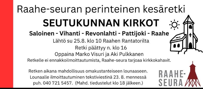 ke 28.8. klo 18 Raahen seurakuntakeskuksella, Sovionkatu 1