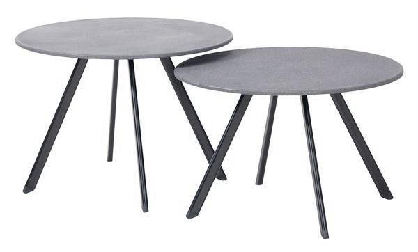 Sis. 2 pöytää. Pöydissä on musta metallirunko ja sementtipinnoitetut