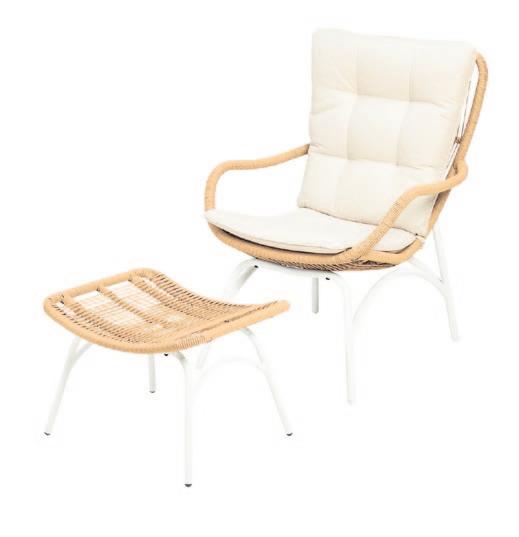 Polyrottinkinen sohvasetti, sisältää kolmen istuttavan sohvan, sohvapöydän, kaksi tuolia sekä 12 cm paksut istuinpehmusteet. Runko on alumiinia. 502210071. *499,00