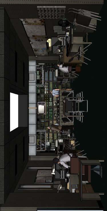 In the hotel, where the different scenes take place, it is designed in such a way that different layers can be seen from different angles. In addition, as this is a place where artificial lighting is the main feature, rendering programs and videos were created to show the feeling of light.