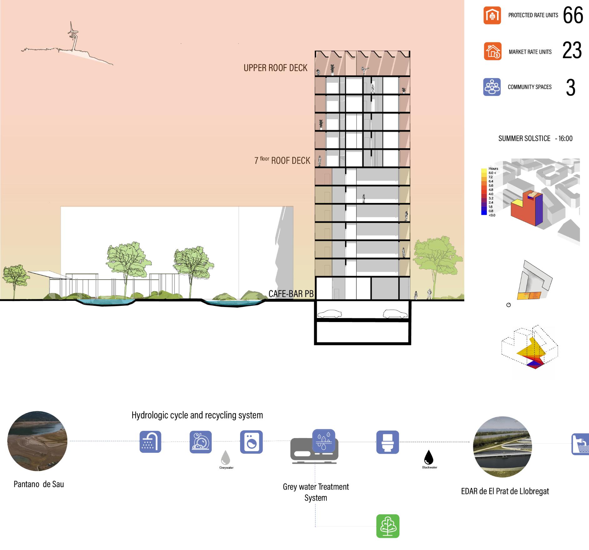 This project addresses the interconnected challenges of housing scarcity, water shortages, and the urban heat island effect that disproportionately affects low-income families. Working withmy role as the Urban Designer project members Eryk Sysmans role as Interiors