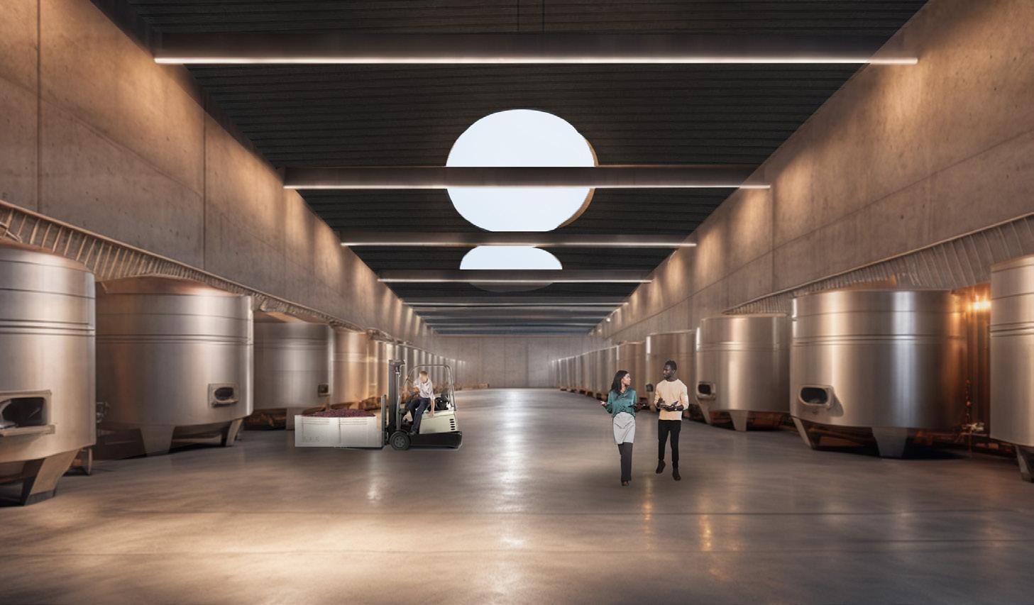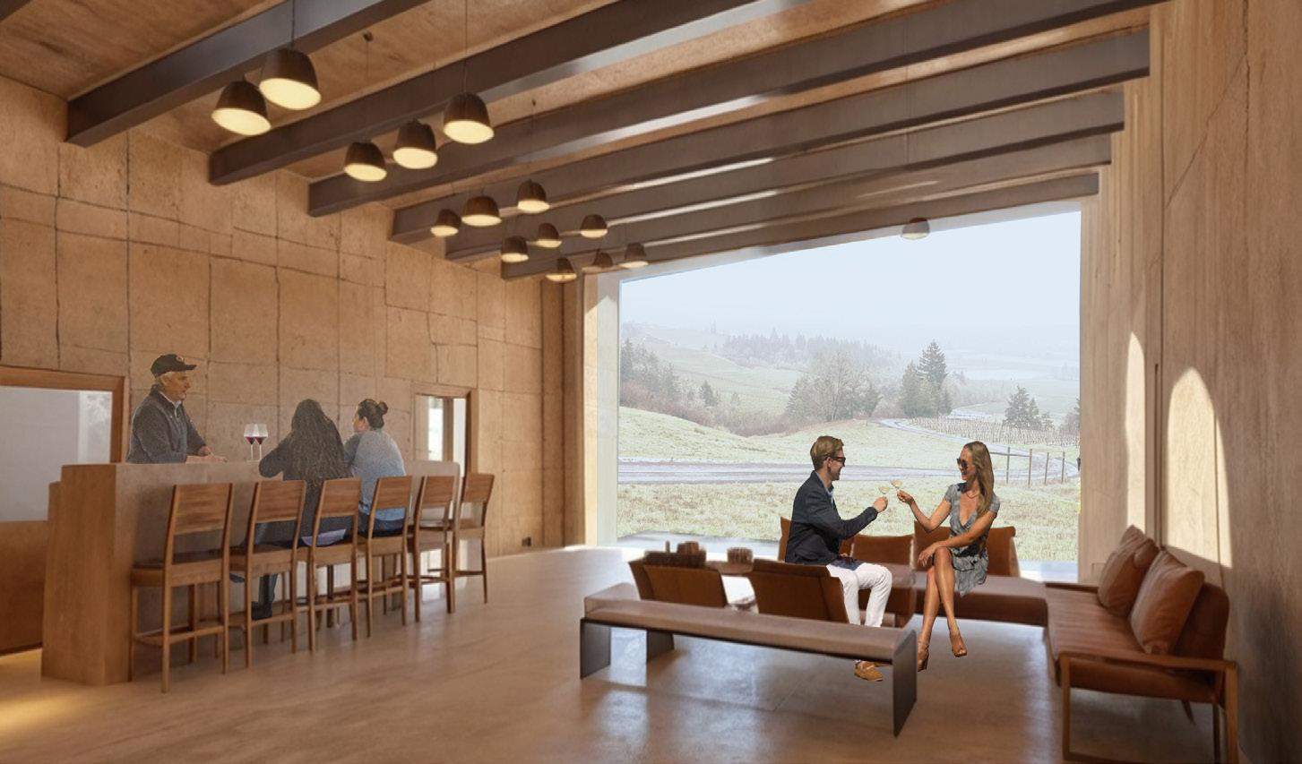 The Wine Village in NE Kings Grade, Newberg, Oregon, is a harmonious blend of innovative wine production and immersive culinary experiences. The project divides into two main sections: a gravity-fed wine production facility on the east side of the road and a vibrant wine village on the west. The wine production space utilizes gravity to enhance gentle handling of grapes and reduce energy consumption, highlighting an environmentally conscious approach to wine making.