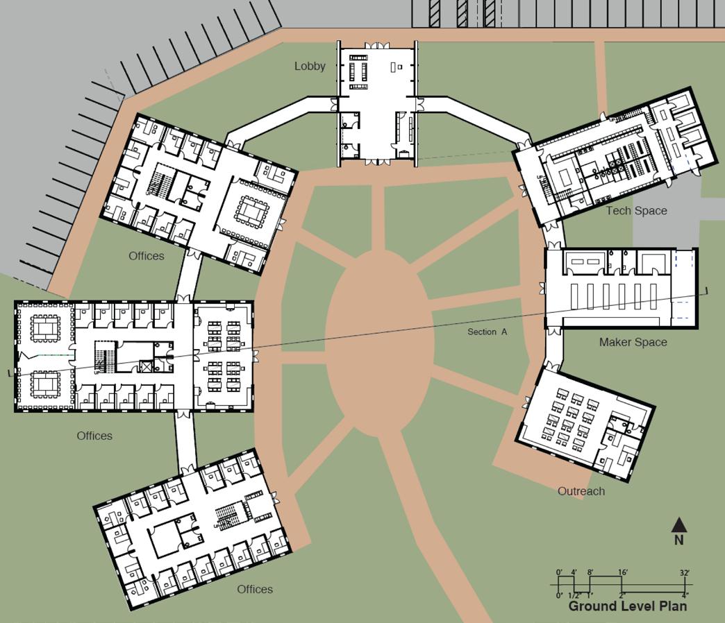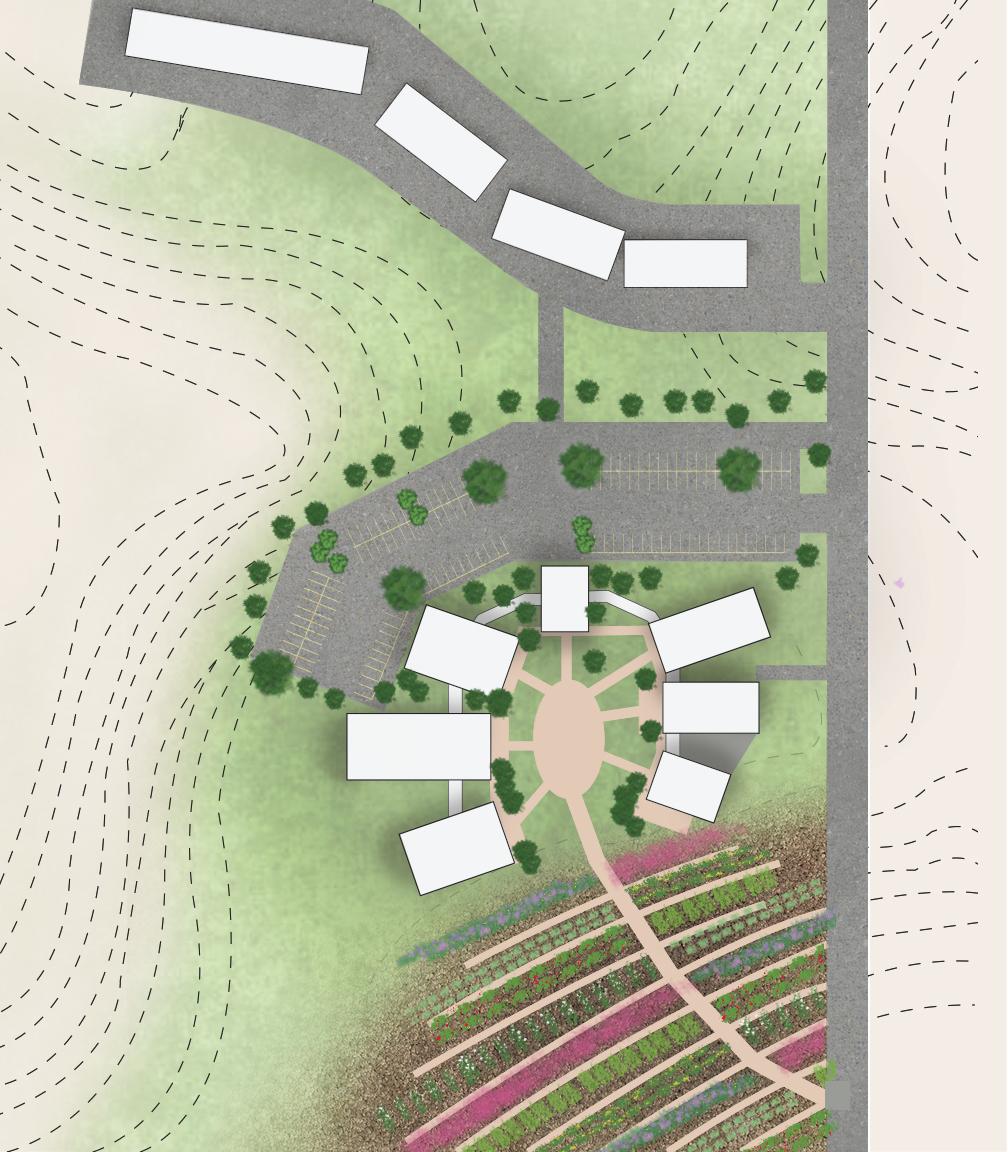 This design focuses on three things: root, connect, and share. The goal is The space facilitates connections to the land and to many people who have lived there since time immemorial.