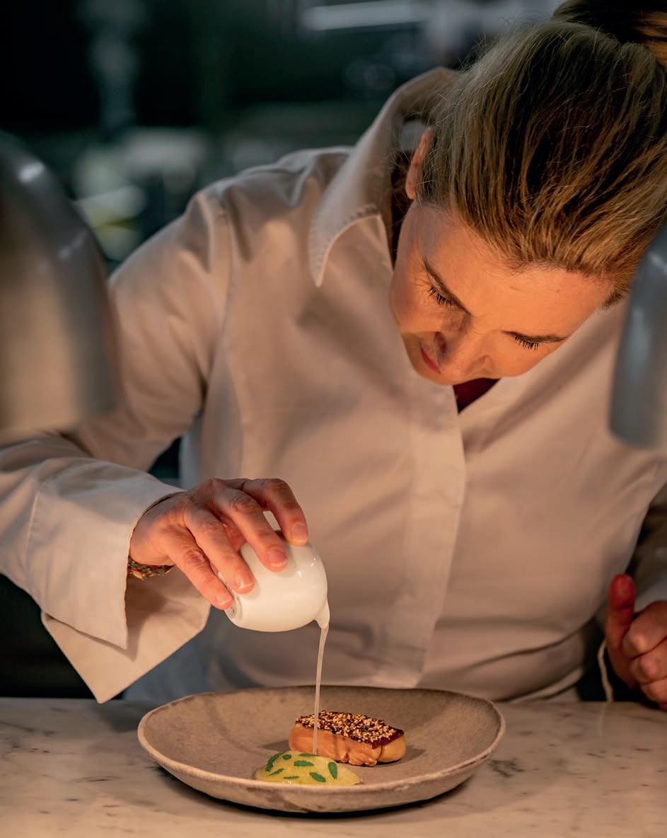 Seit nunmehr zehn Jahren bin ich in der Küche tätig. Aufgewachsen im Wirtshaus meiner Eltern, kann man sagen, dass ich ein echtes „Gasthauskind“ bin. Als ich schließlich in den Familienbetrieb einstieg, stellte ich das traditionelle Konzept – ein klassisches Wirtshaus mit einer hohen Gästeanzahl von 40 bis 50 Kuverts zu Mittag und Abend, sieben Tage die Woche – völlig auf den Kopf. Ich wollte meinen eigenen Weg gehen, und die „feine“ Küche war ursprünglich nicht mein Ziel. Ich habe von Beginn an ganz allein in der Küche gearbeitet, und es war schon ein kleines Wunder, dass ich mit 21 Jahren meine erste Haube erhielt – von einer zweiten ganz zu schweigen. Jetzt, mit 26 Jahren, ist es mir wichtig, nicht nur als die jüngste Haubenköchin Österreichs wahrgenommen zu werden. Trotz vieler Erfolge, die ich mittlerweile feiern durfte, möchte ich nicht auf diese eine „heldenhafte“ Errungenschaft reduziert werden.