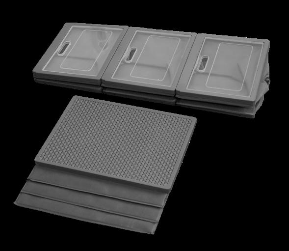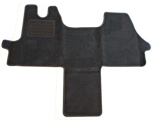 Compartimenttapijt voor de bestuurderscabine in de camper. Geluids- en warmte-isolatie. De mat heeft rubberen versteviging bij de pedalen. Zwart.