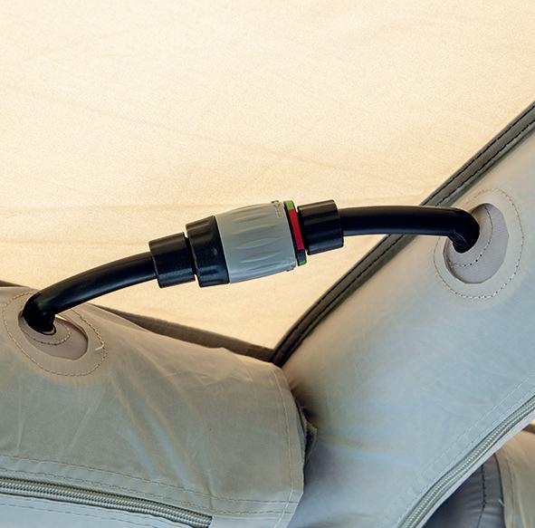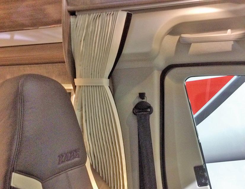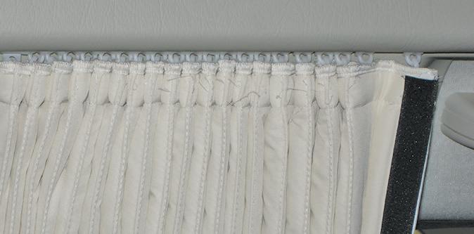 Er wordt een GoCamp thermisch gordijn voor semi-geïntegreerde stacaravans opgehangen de bestuurderscabine en bestaat uit drie verschillende materialen die samen beschermen tegen kou, hitte, geluid en licht. Het lichte textiel aan de binnenkant is gemaakt van pool kwaliteit en in combinatie met de plooiing is het geluidsabsorberend creëert een huiselijk binnenklimaat. Het thermische gordijn is wasbaar op 40˚C.