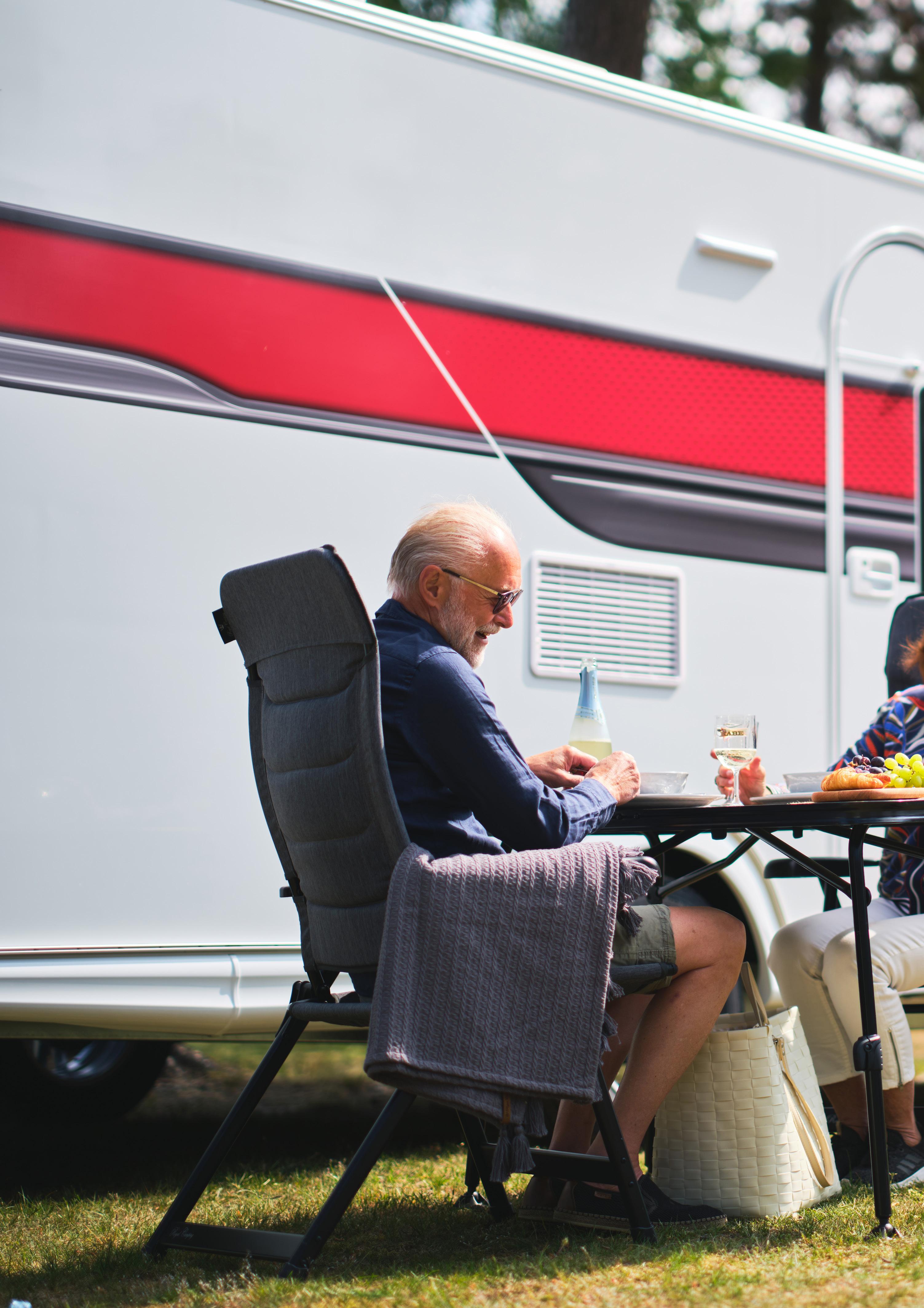 Der leichte und bequeme Campingstuhl, der sowohl eine hohe Rückenlehne, Polsterung in der Rückenlehne als auch eine verstellbare Kopfstütze bietet. Der Stuhl ist ein stabiler und langlebiger Campingstuhl aus strapazierfähigem DuraDore® 3D-Gewebe und ErgoShell®-Technologie. Das Gestell besteht aus DuraLite®, was den Stuhl leichter macht.