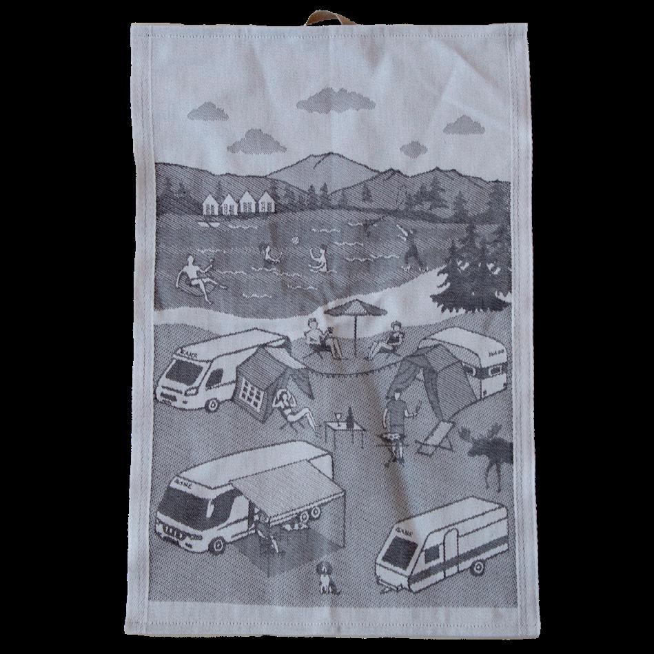 Unser verspieltes Küchentuch, das sich gleichermaßen gut als Leinwand- oder Wanddekoration eignet.