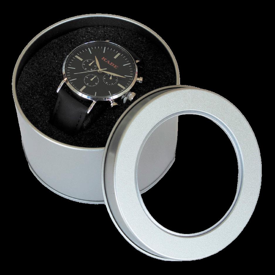 KABE Logo auf dem Zifferblatt, Rückseite aus Edelstahl und wasserdicht bis 3 ATM.