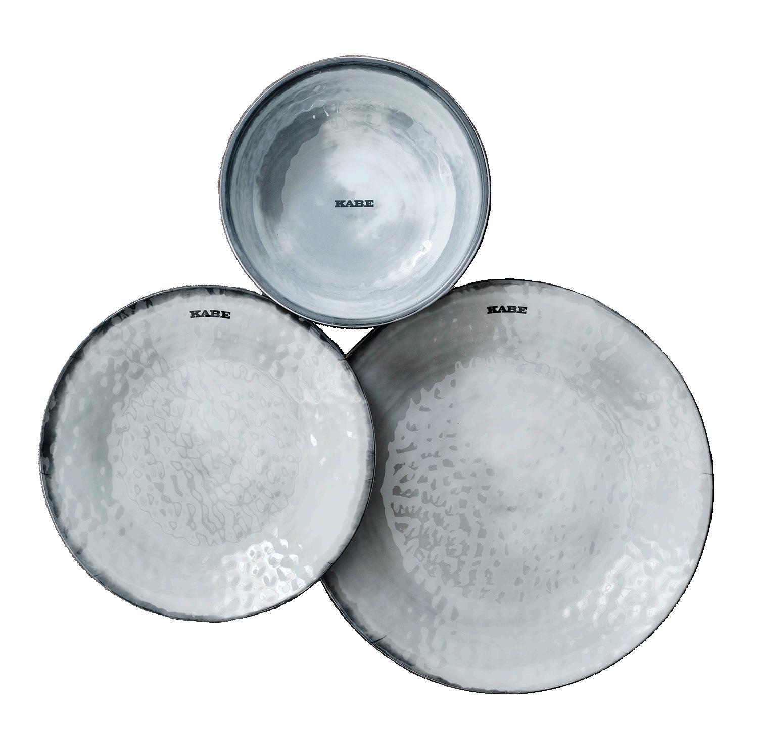 Ein exklusives Geschirr aus leichtem und langlebigem Melamin mit Porzellan-Gefühl. Das Geschirr besteht aus 4 flachen Tellern, 4 tiefen Tellern und 4 Tellern. Mit rutschfester Unterseite. Spülmaschinenfest (max. 70 °C) – nicht in der Mikrowelle verwenden.