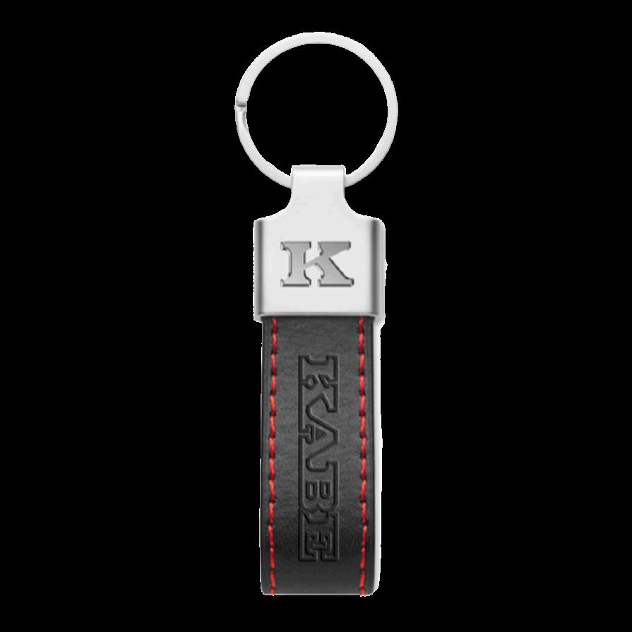 Schlüsselring mit Lederband und geprägtem Kabellogo.