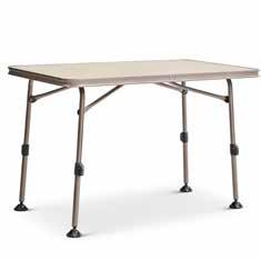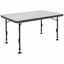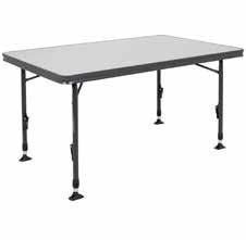 De fire justerbare, pulverlakkerte bena gjør det enkelt å justere høyden og få perfekt balanse selv på ujevne overflater. Bordet er også enkelt å folde sammen og oppbevare i en praktisk bæreveske som følger med.