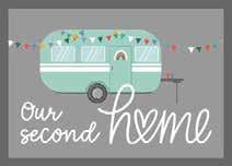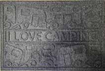 Dørmatte med campingmotiv i 100 % polyamid med høy absorpsjonsevne. Sklisikker gummibakside. Mål: 40 x 60 cm.