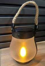 Dekorativ solcellelykt som gir et mykt, varmhvitt lys. Den frostede skjermen sørger for behagelig lysspredning, og håndtaket i naturtau gjør lykten enkel å bære eller henge opp. Lades automatisk i dagslys og tennes når det blir mørkt.