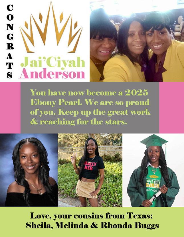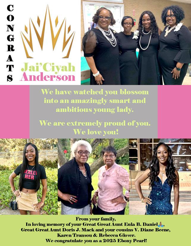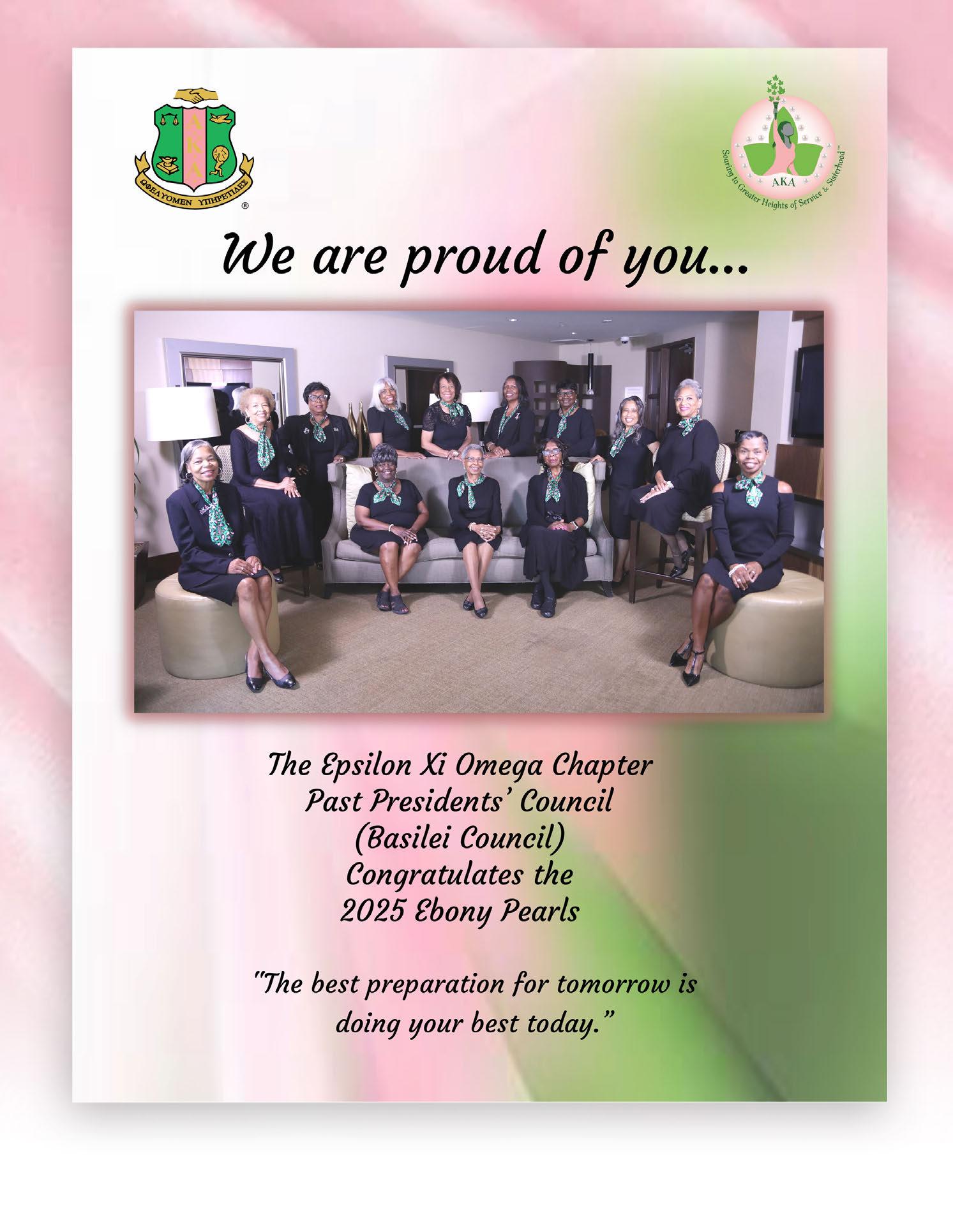 We wish each of you a wonderful experience tonight and one that will bring smiles to your faces and tears to your eyes as you witness and share in this historic occasion for our beautiful 2025 Ebony Pearls.