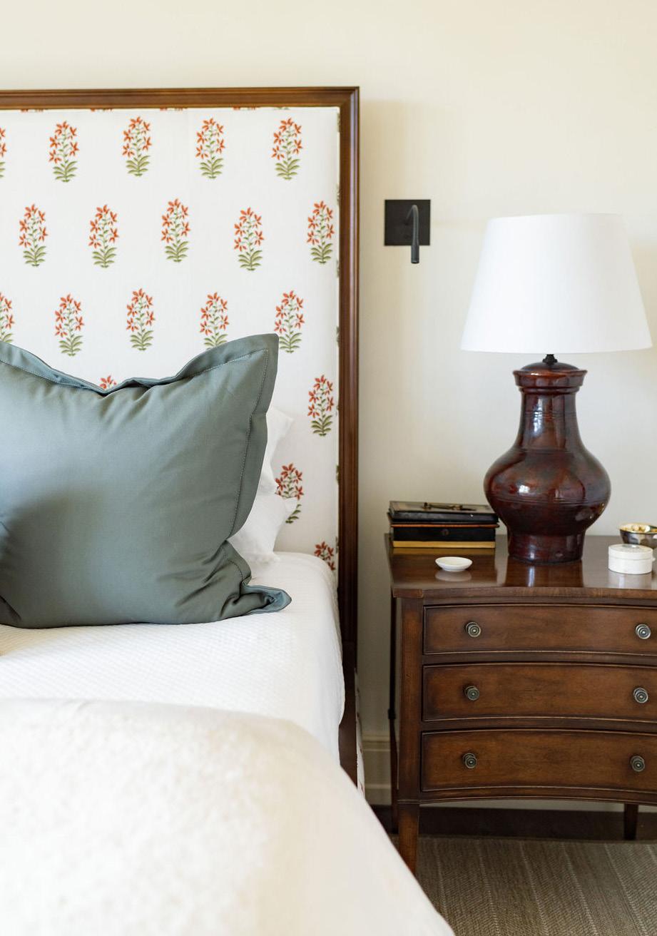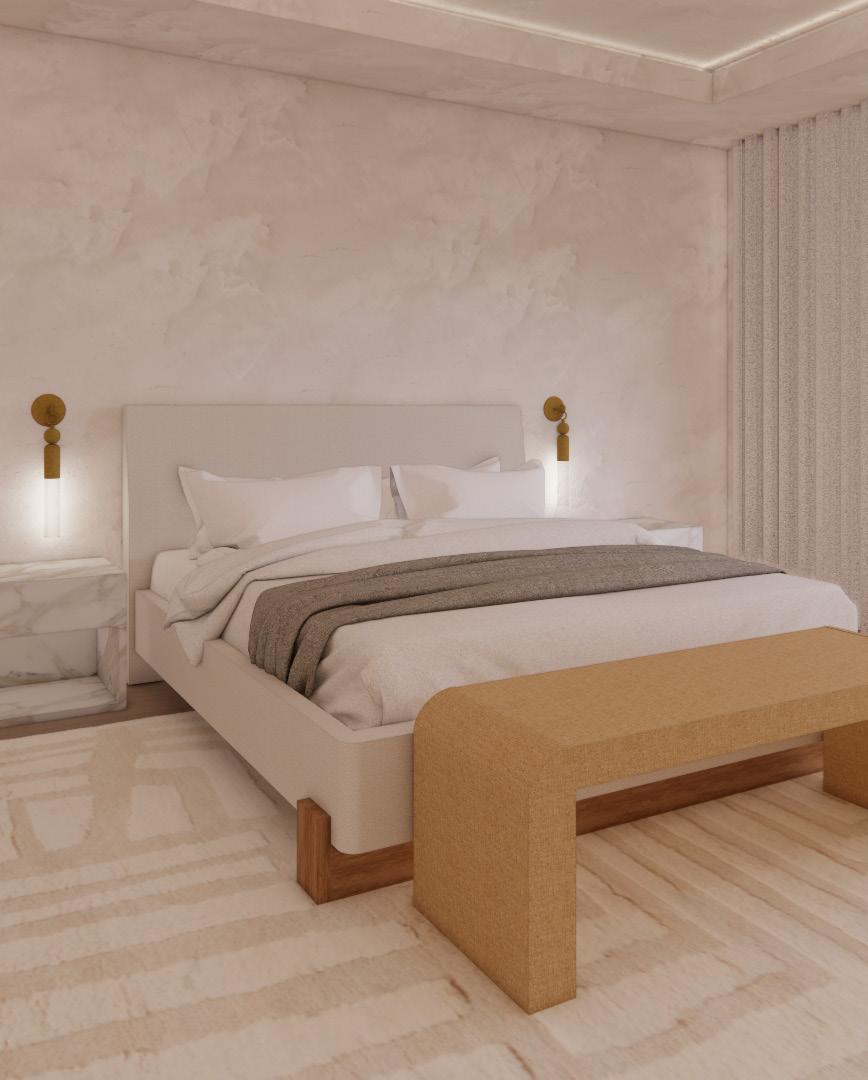 BED, NIGHTSTANDS WHITE OAK, UPHOLSTERY