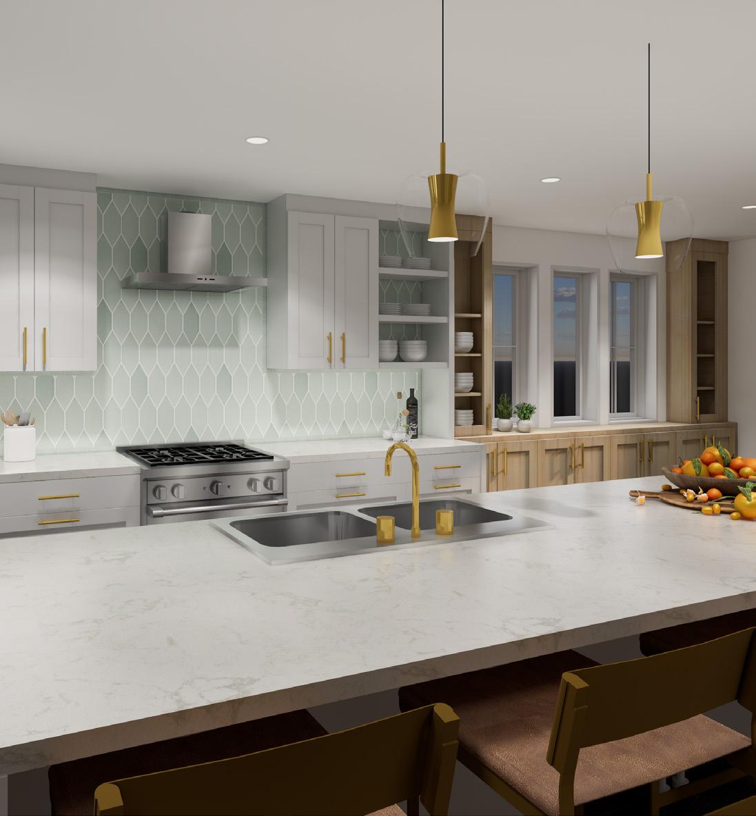 KITCHENETTE WHITE OAK, MARBLE, BRASS