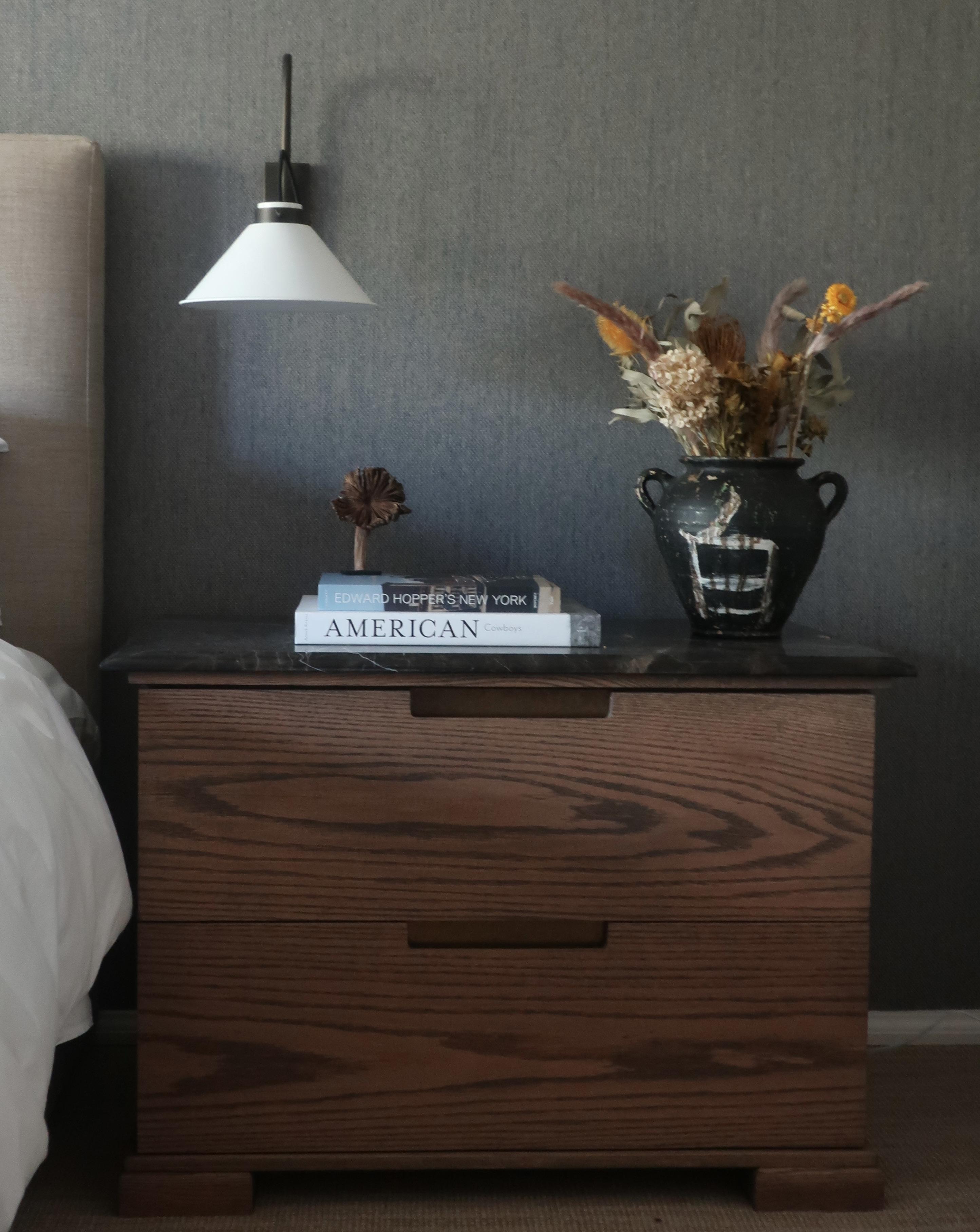 NIGHTSTANDS WHITE OAK, MARBLE, BRASS