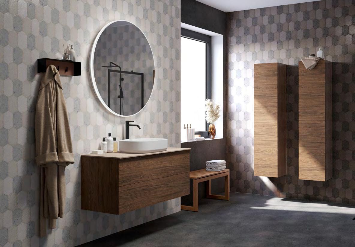 KAMĖ BATHROOM FURNITURE COLLECTIONS ARE DEVELOPED AND RENEWED EVERY YEAR, TAKING INTO ACCOUNT CUSTOMER NEEDS AND INTERIOR DESIGN TRENDS. A WIDE RANGE OF COLOURS AND WOOD DECORS, DIFFERENT FURNITURE DESIGNS AND COMBINATIONS – FOR YOUR CHOICE. CREATE YOUR OWN STYLE AND ATMOSPHERE IN THE BATHROOM WITH KAMĖ FURNITURE.