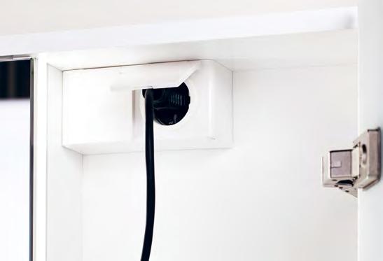Mirror cabinets are equipped with metallic colour IP44 safety class switch and socket that are conveniently placed in the top center of the cabinet.