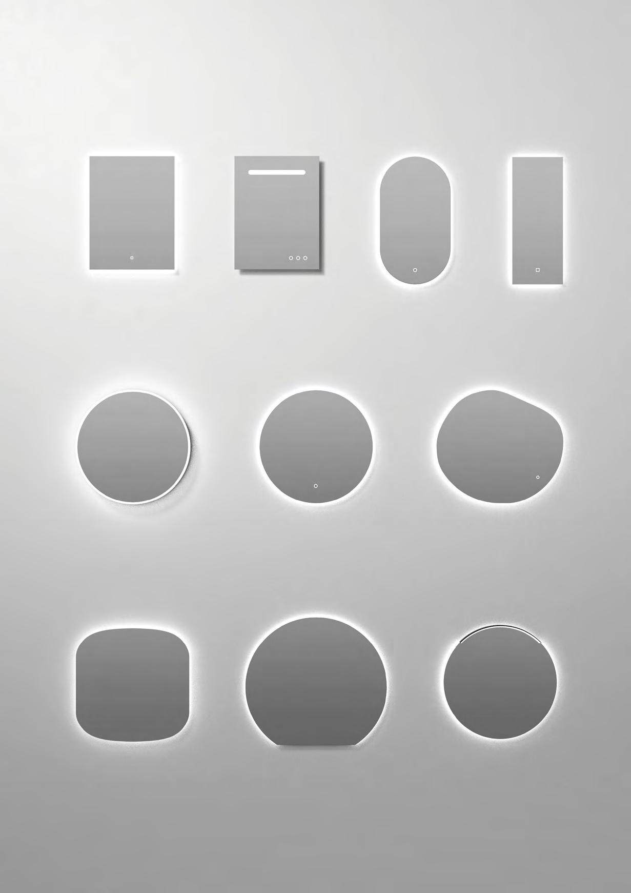 The cabinet doors feature a 45-degree chamfered edge for easy opening, while the interior includes a practical shelf. The touch-sensor dimmable MINI mirror in the series offers adjustable light intensity and colour temperature to suit your needs.
