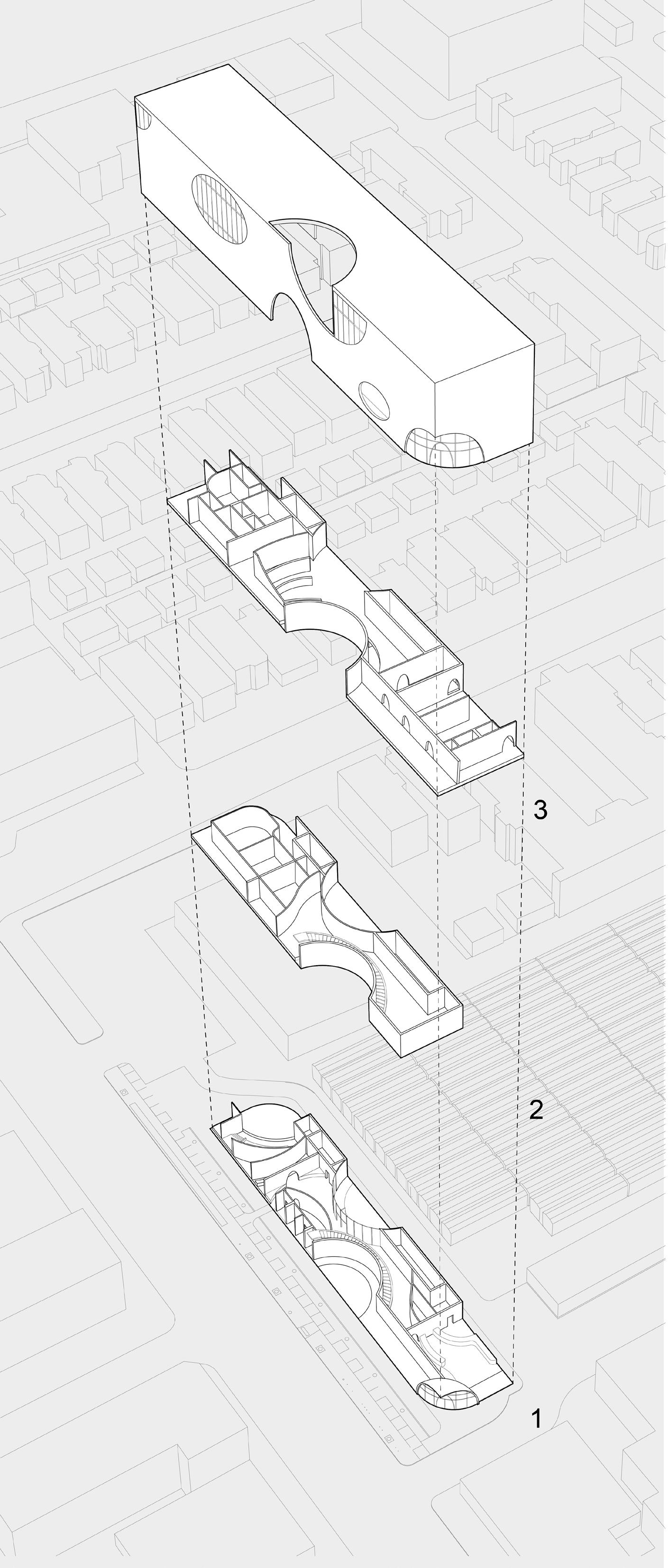 The Albany Park Community Center, located at the heart of Albany Park, Chicago, is a testament to the city's musical heritage and an architectural turning point in my academic career. Its distinctive design, blending curvilinear forms into a rectangular structure, reflects the harmonious fusion of tradition and innovation. These elegant curves not only symbolize the ever-evolving nature of music but also shape versatile interior spaces. The top-floor recording studio, enclosed within this design, provides a space for local musicians to create. Beyond its aesthetics, the center fosters community engagement, bridging diverse backgrounds, much like music does. As the Albany Park Community Center continues to inspire and shape the neighborhood, it showcases the transformative power of architecture as a canvas for creativity and a reflection of the communities it serves.