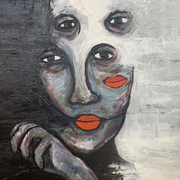 3. “a tint of red” acrylic on canvas, 40”x 40”