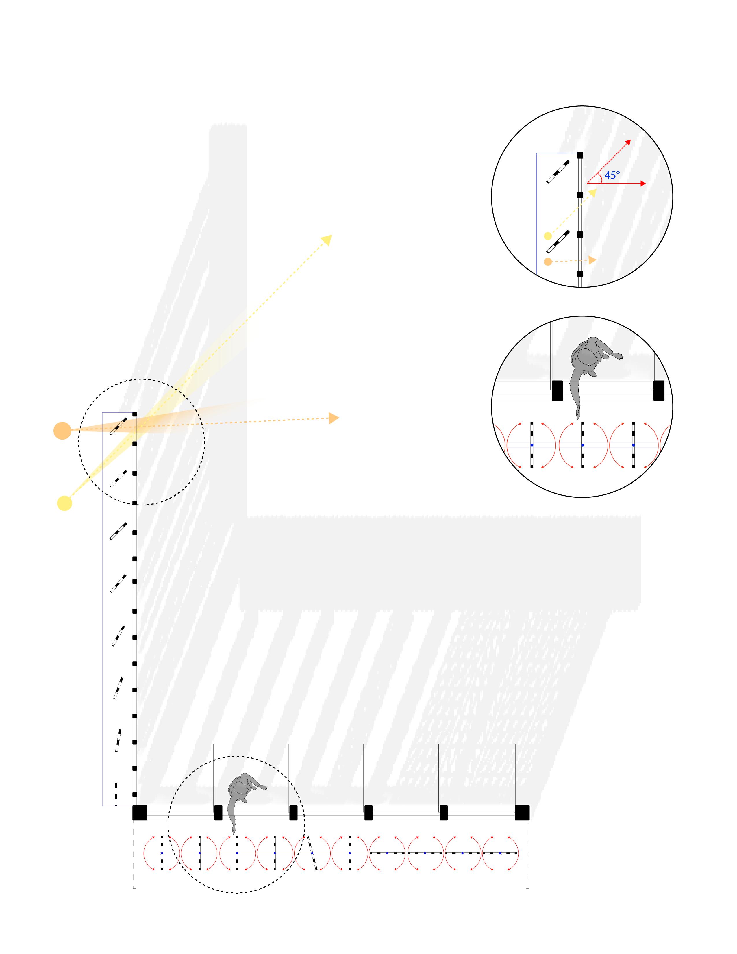 This dual facade design based in the city of Barcelona exemplifies architectural innovation. Developed in a workshop guided by architects Jaime Prous and Pablo Garrico, this project creatively combines form and function through shading devices, adapting to the sun’s path. On the southern facade, rotating wooden panels perform a dual role, allowing natural light to create a mesmerizing interplay of light and shadow and offer optional privacy. On the western facade, static panels correspond with the shifting angles of the afternoon sun, diffusing light and casting patterns throughout the space. This project underscores the power of light and shadow in architecture, enriching spaces with both beauty and functionality.
