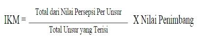Menurut Keputusan Menteri Pendayagunaan Aparatur Negara (KEPMENPAN) Nomor 25 Tahun 2004 Tentang Pedoman Umum Penyusunan Indeks Kepuasan Masyarakat Unit Pelayanan Instansi Pemerintah, untuk memeroleh nilai IKM suatu unit pelayanan dapat dihitung dengan menggunakan nilai rata-rata tertimbang masing-masing unsur yang dikaji dengan rumus sebagai berikut: