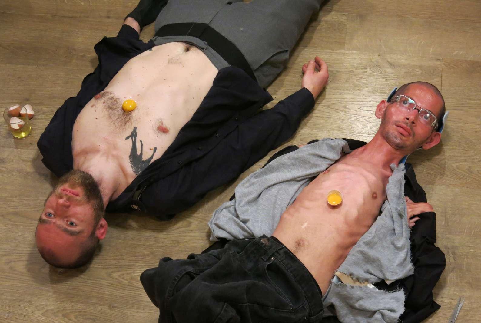 « Il est question d’un rituel. Il pourrait bien s ’agir d’un mariage. Un mariage étrange et improbable. Un mariage hors société. Un mariage cruel. Un mariage hors du temps. Un mariage de corps immobiles. Un mariage d’êtres humains. Un mariage hors religion. Un mariage antisocial. Entre quelqu’un de valide et quelqu’un d’invalide. Entre Yann Marussich et Kamil Guenatri. Il n ’ y a aucune pitié à avoir. La pitié est une forme de pouvoir sur l’autre, en se croyant supérieur à ce qu’il y a en face de nous et qui nous dérange. Personne n ’est supérieur ».Yann Marussich