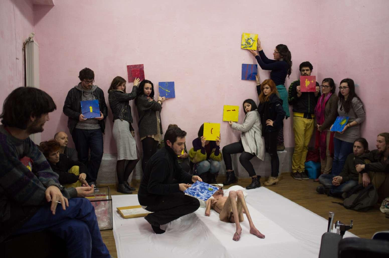 Cette action est une construction poétique inspirée d'actes réalisés et d'objets utilisés entre les années 2010 et 2014. Plus qu ' une rétrospective, en usant de situations qui ont indépendamment formé des concepts, je tente de mettre en évidence un processus plus global de l'ensemble de mes intentions artistiques. Sans aucune interprétation car c 'est l'espace et la succession des actes qui déterminent les ponts entre les éléments. Il y a l'idée de rassembler mais aussi d'effriter toutes les images déjà établies en les confrontant les unes aux autres.