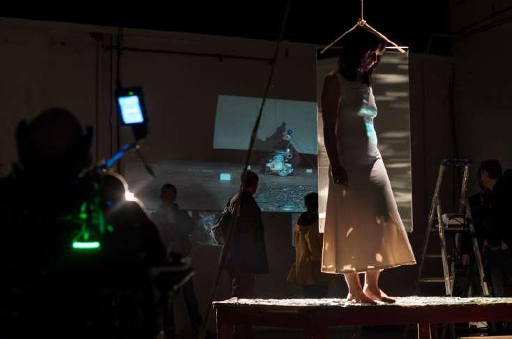 Ce projet audiovisuel au départ, portait sur la réalisation d’un film documentaire sur l’art performance à travers mon quotidien et ma pratique personnelle. Au fil de la mise en œuvre, il nous a semblé évident de questionner les modes de présentation et de représentation liées au cinéma, l’action, la poèsie et les arts visuels. De cette envie nous avons décidé avec Eva de créer des images cinématographiques pouvant se décliner dans l’espace imparti en des dispositifs plastiques et performatifs. Ces immersions tendent à créer des sphères d’intimité pour la caméra, l’image et le public.