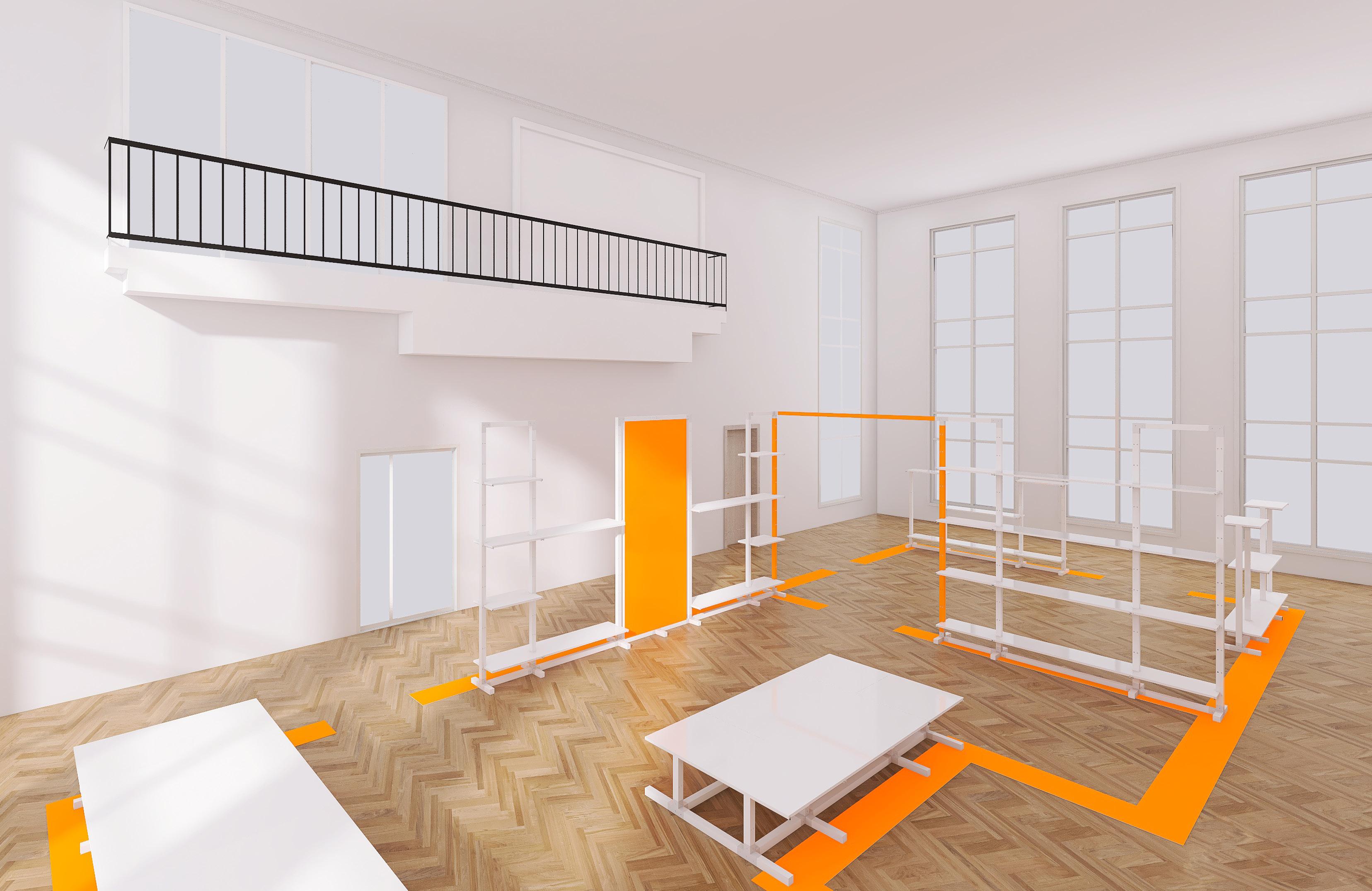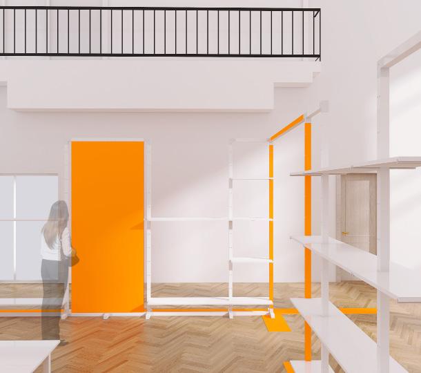 Moduł wysoki, moduł średni oraz moduł niski. Każdy z modułów można zmodyfikować według własnych potrzeb oraz założeń. Projekt na wizualizacjach został zaaranżowany pod wystawę końcoworoczną na Wydziale Sztuki UP.