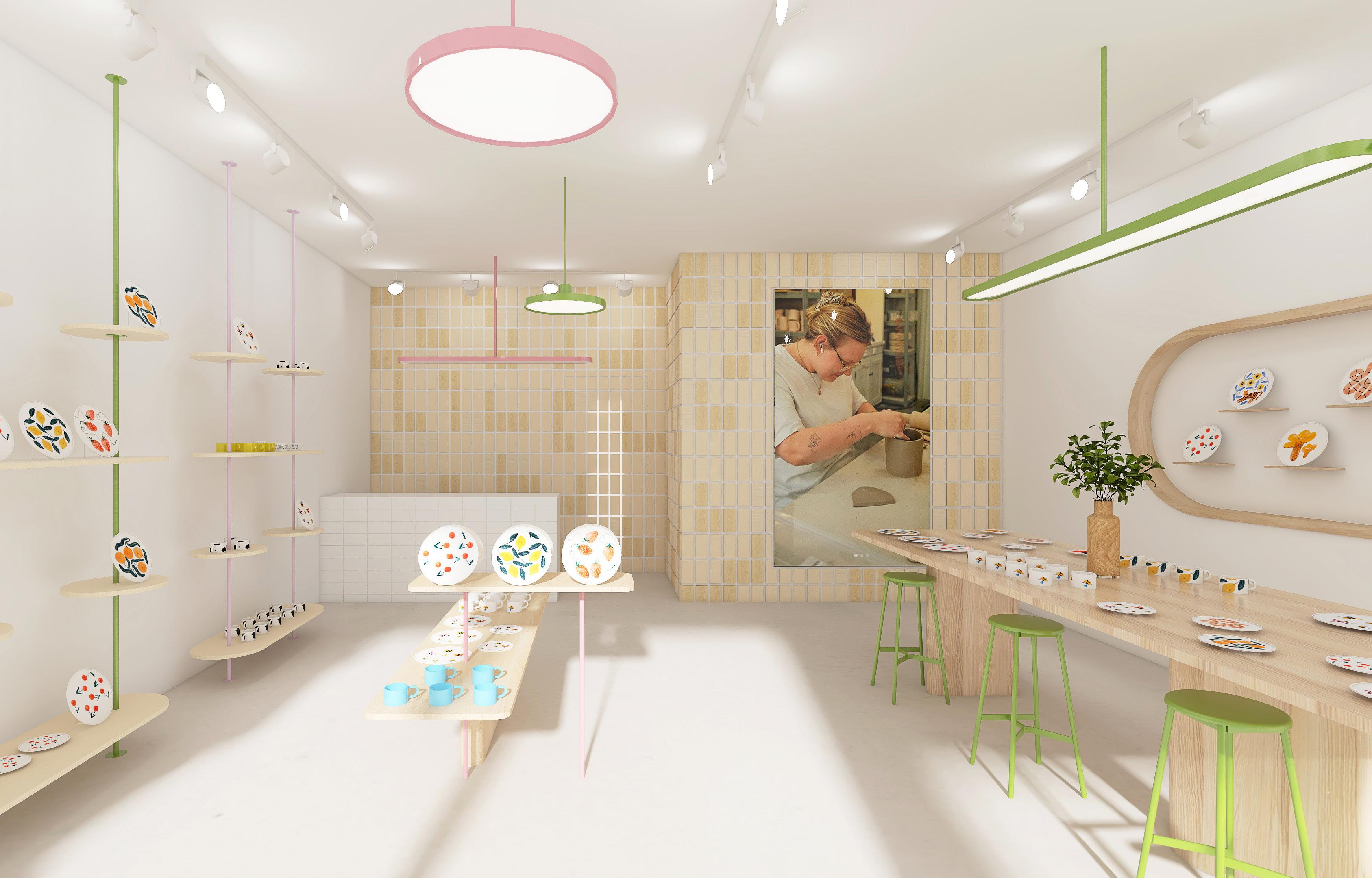 Głównym założeniem projektu showroomu dla marki TrzaskCeramic było oddanie charakterystycznych motywów dla marki we wnętrzu.