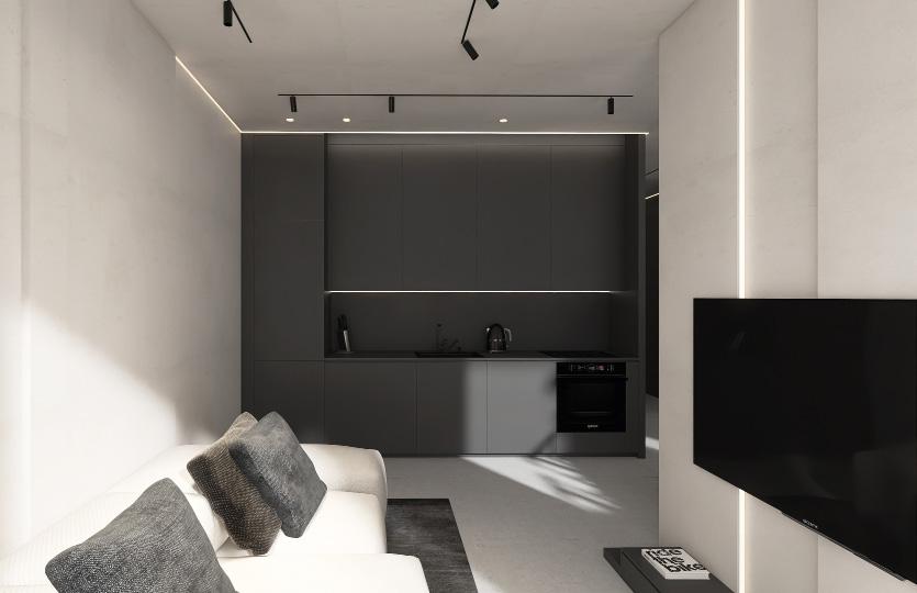 Głównym założeniem projektowym było zaprojektowanie mieszkania w minimalistycznym stylu, w ograniczonej palecie barw, dostosowanych do preferencji wzorniczych użytkowników mieszkania