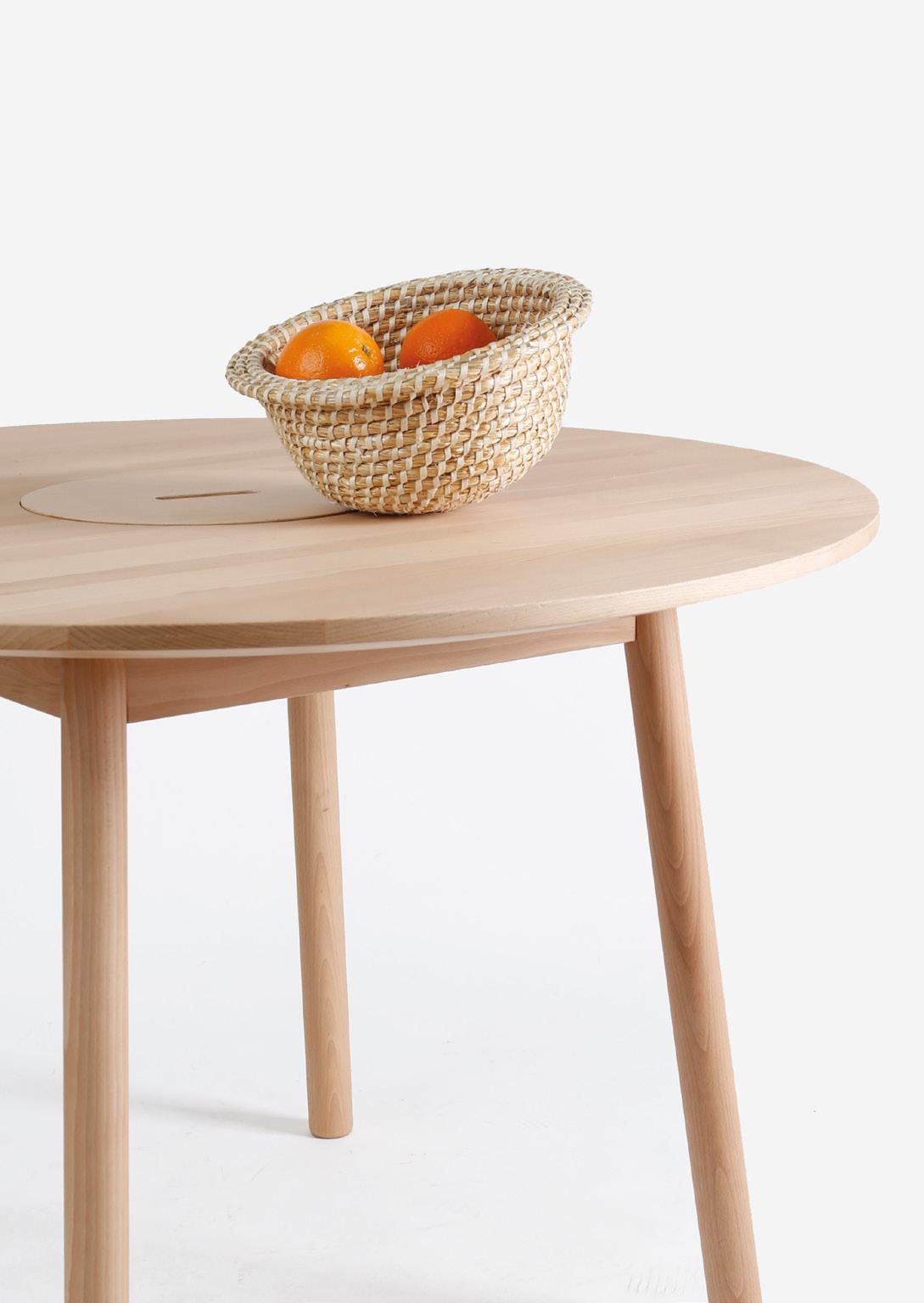 Projekt stołu WEAVE wykonany jest z litego drewna bukowego.