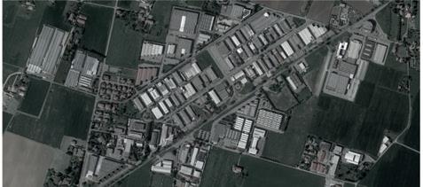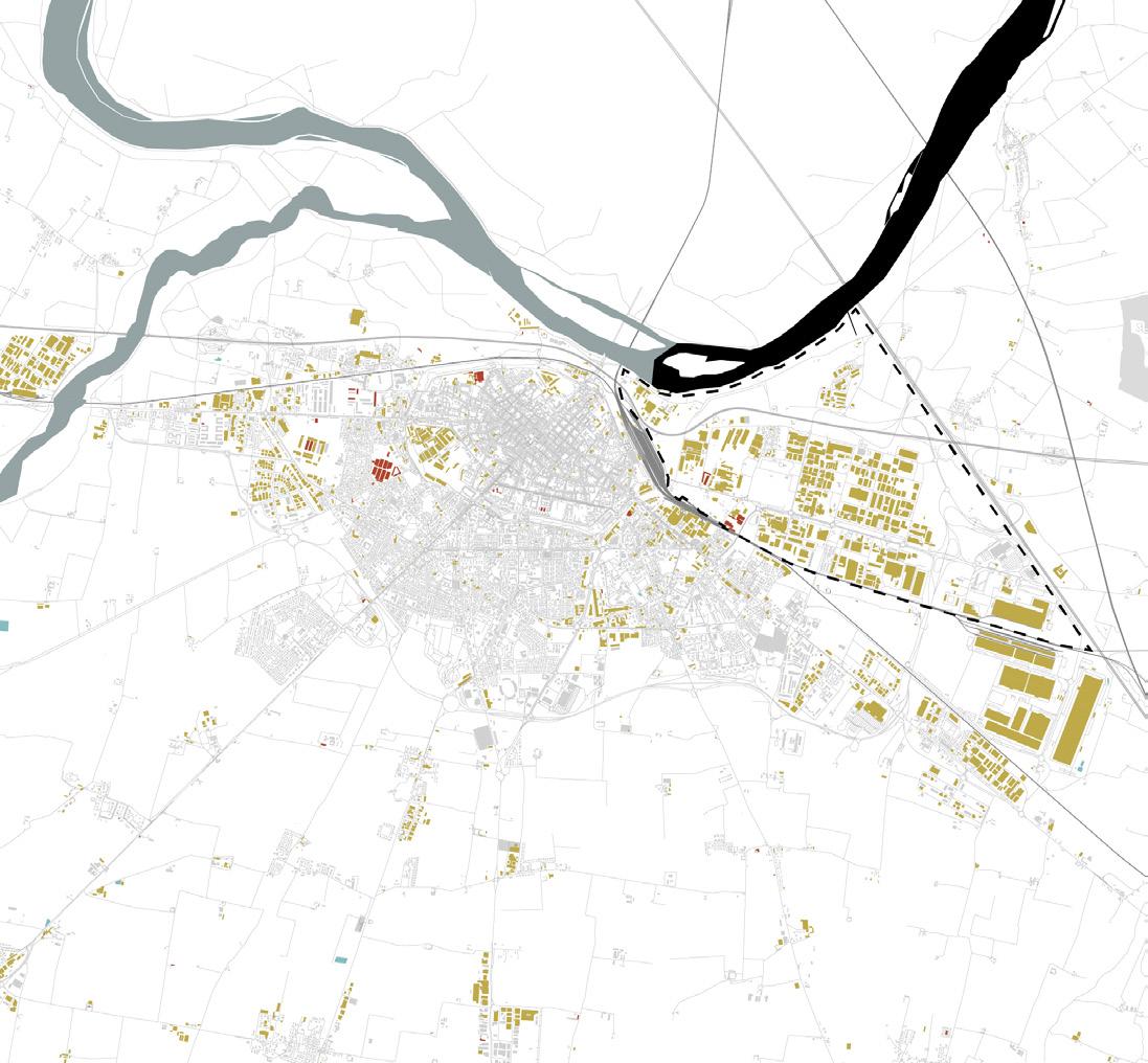 Po river, water system Piacenza urban tissue built area in the industrial zone existing roads existing railways existing highways