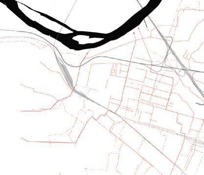 Industrial zone is perceived as a border between a city and the river and polluting source. There is a lack of urban relations between building fabric and the river embankment with disrupted paths and neglected image of the place.